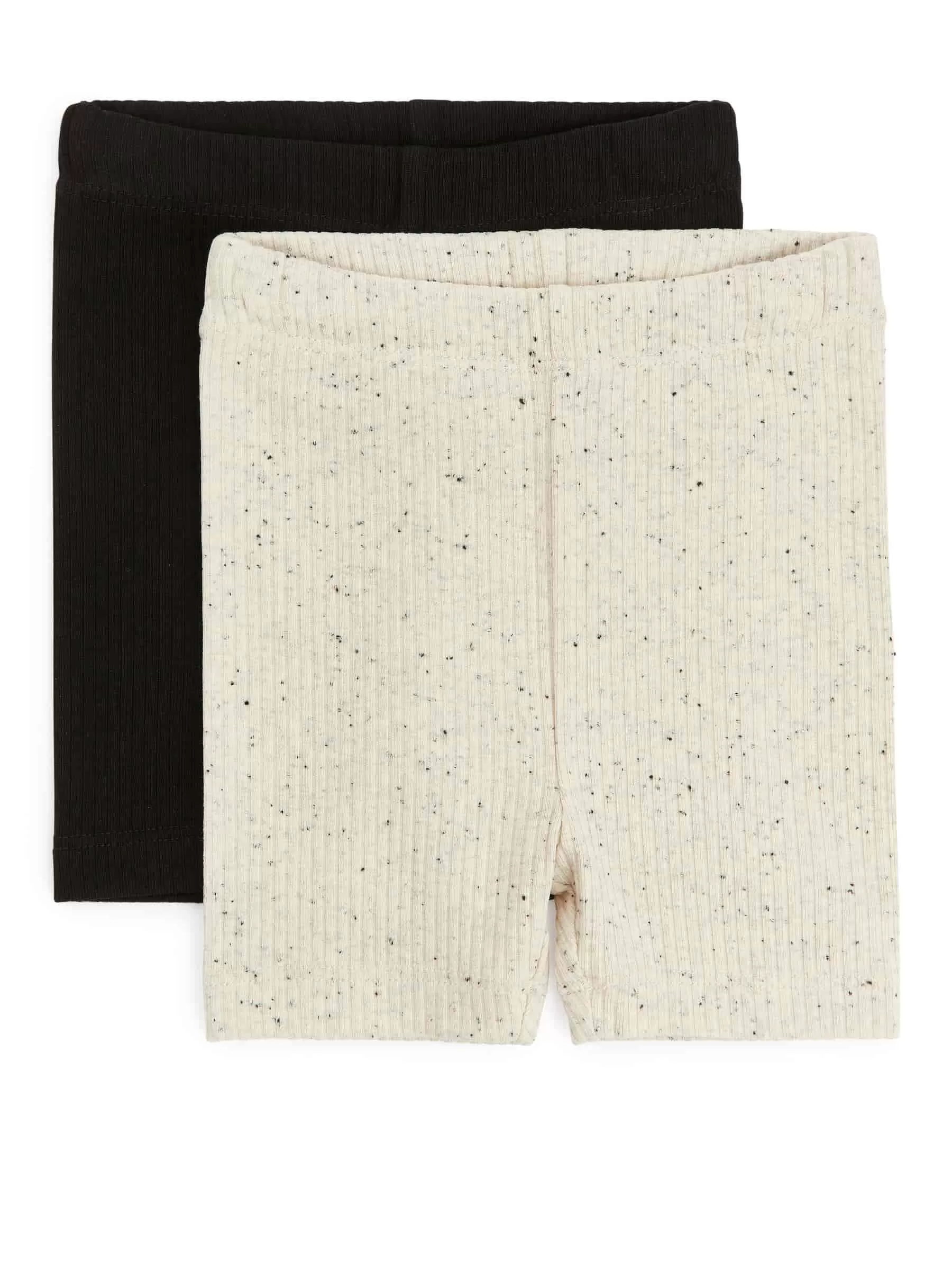 Weiche und dehnbare Shorts mit enger Passform, inspiriert von Radsportbekleidung. Sie sind aus einem gerippten Jerseystoff geschnitten. Verstellbare Gummizüge in der Taille. Set bestehend aus zwei Paaren.