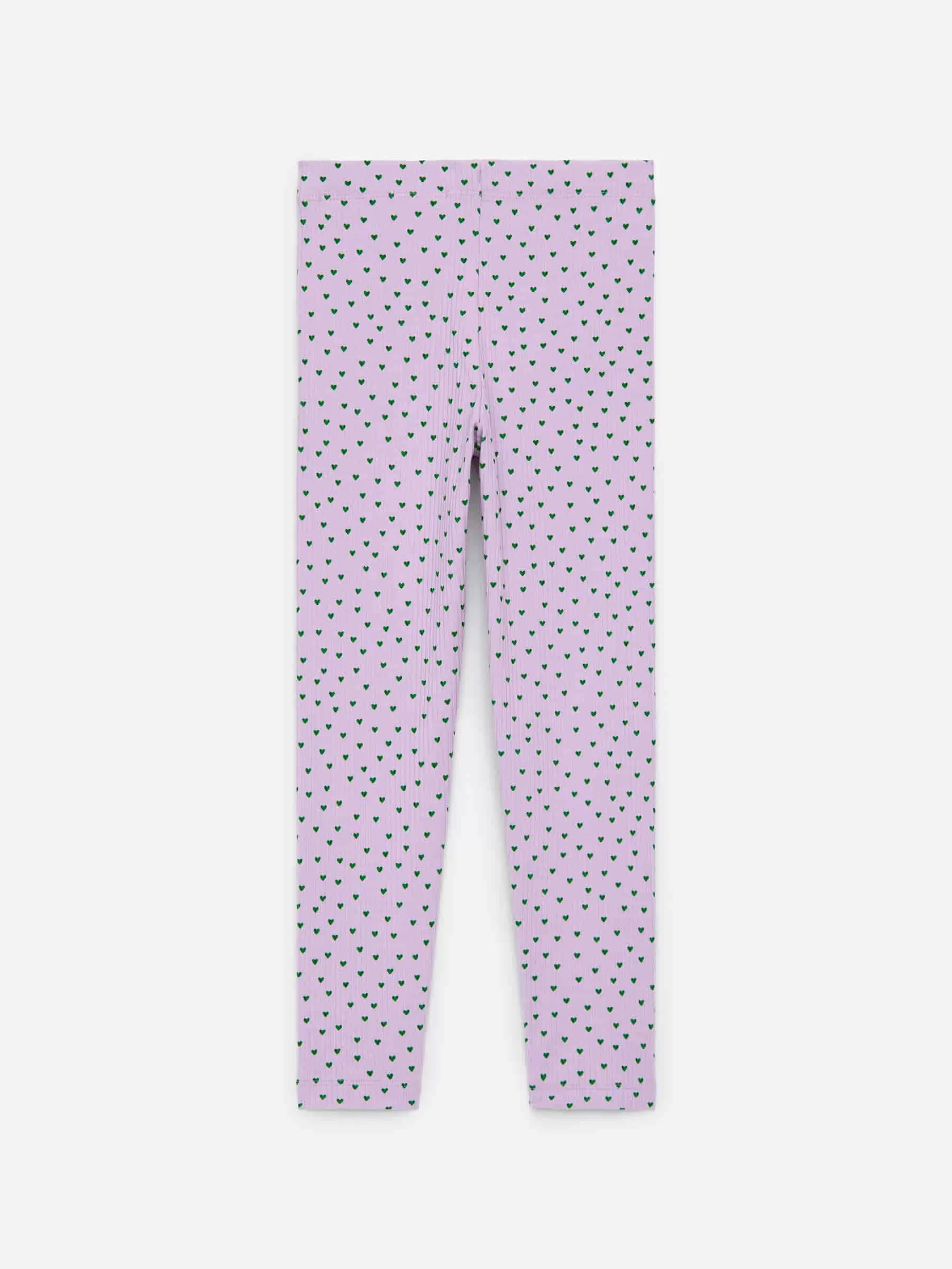 ARKE Kinder Gerippte Leggings Lila/grüne Herzen