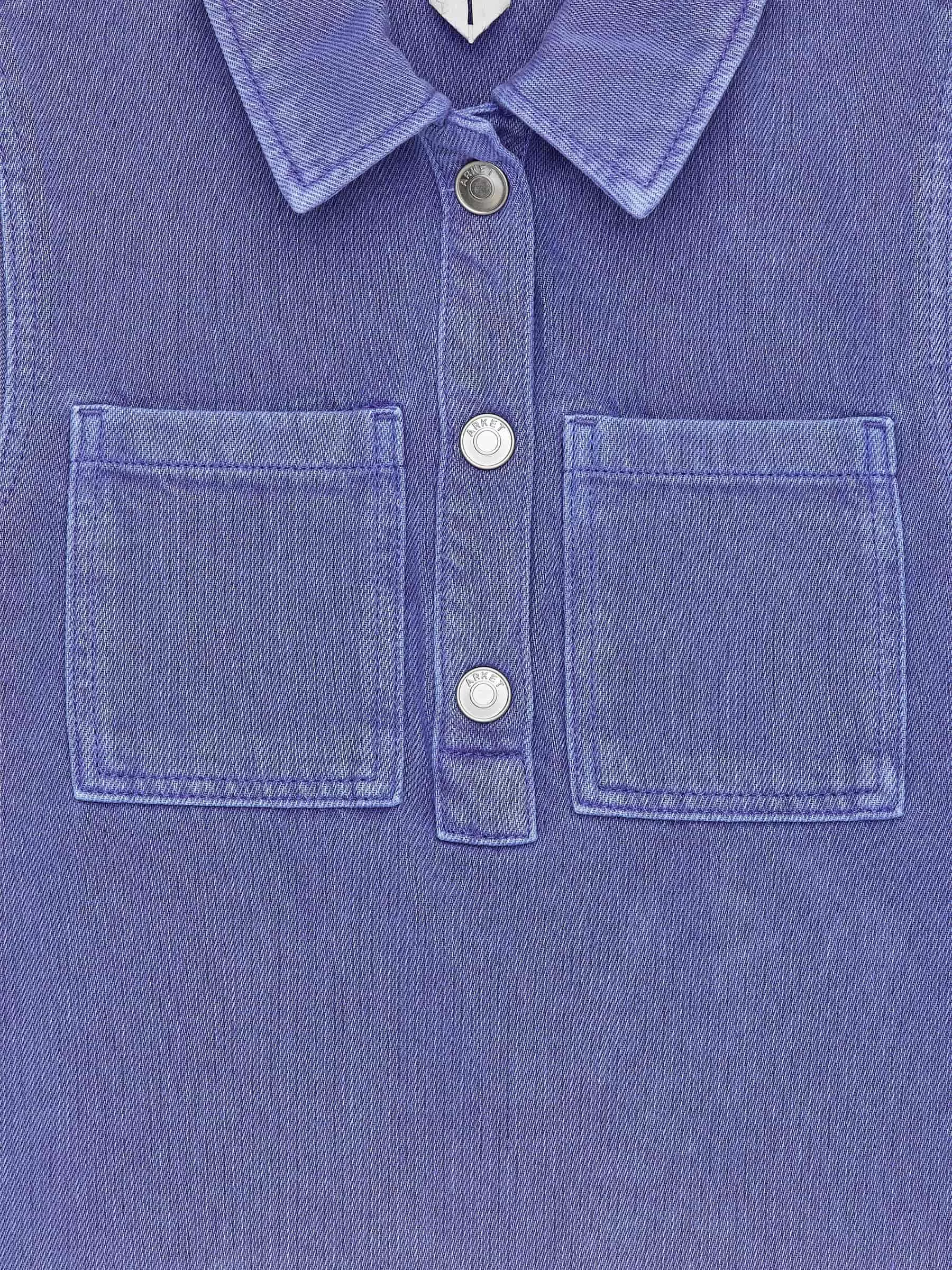 Langärmliges Jeanskleid aus Baumwolle. Aufgesetzte Taschen auf der Brust und Knopfleiste vorne mit Druckknöpfen.