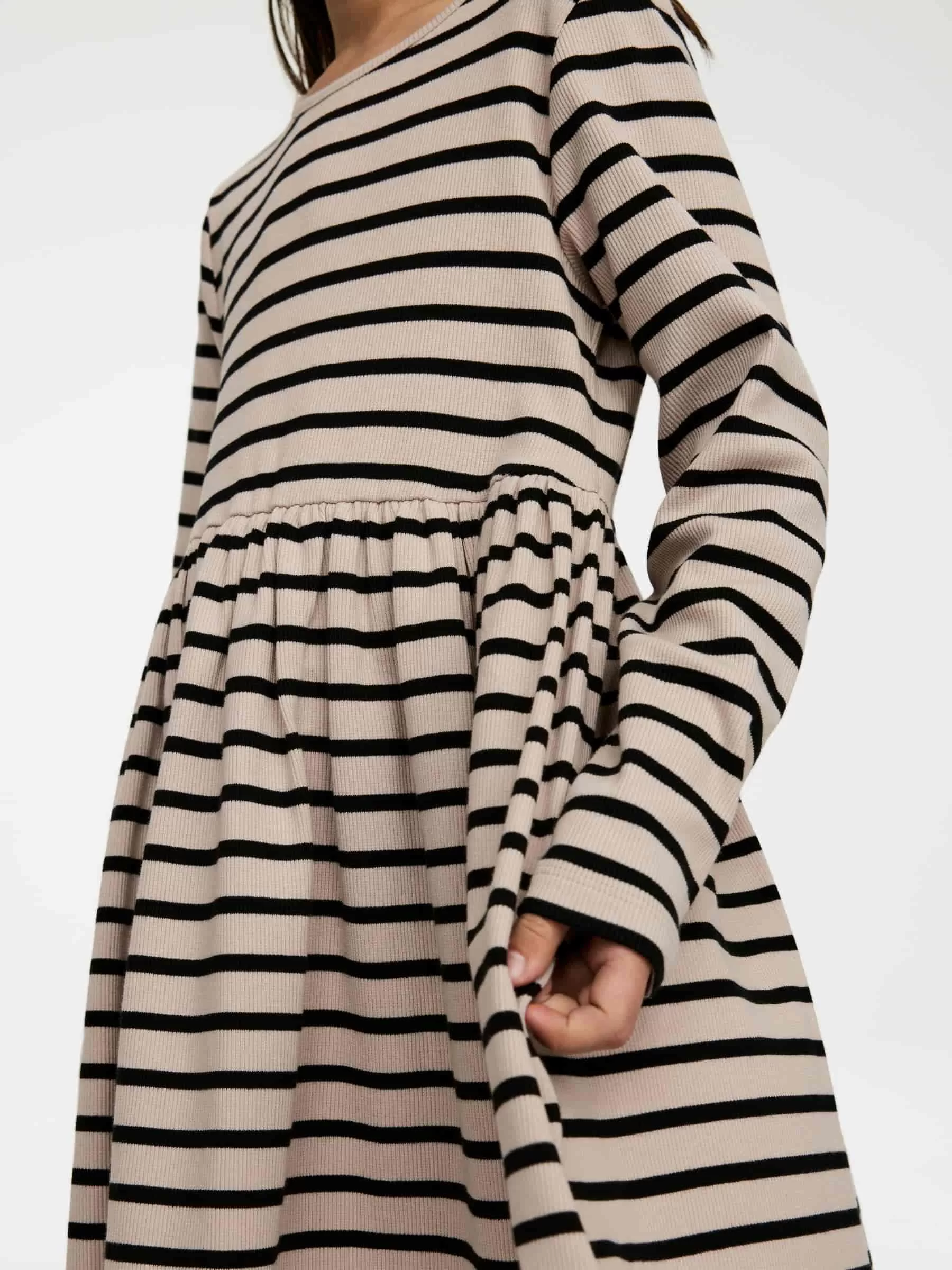 Rippenstrickkleid aus Baumwolle mit einem Hauch Elastan für Dehnbarkeit. Ein langärmliges Modell mit Raffungen an der Taille.