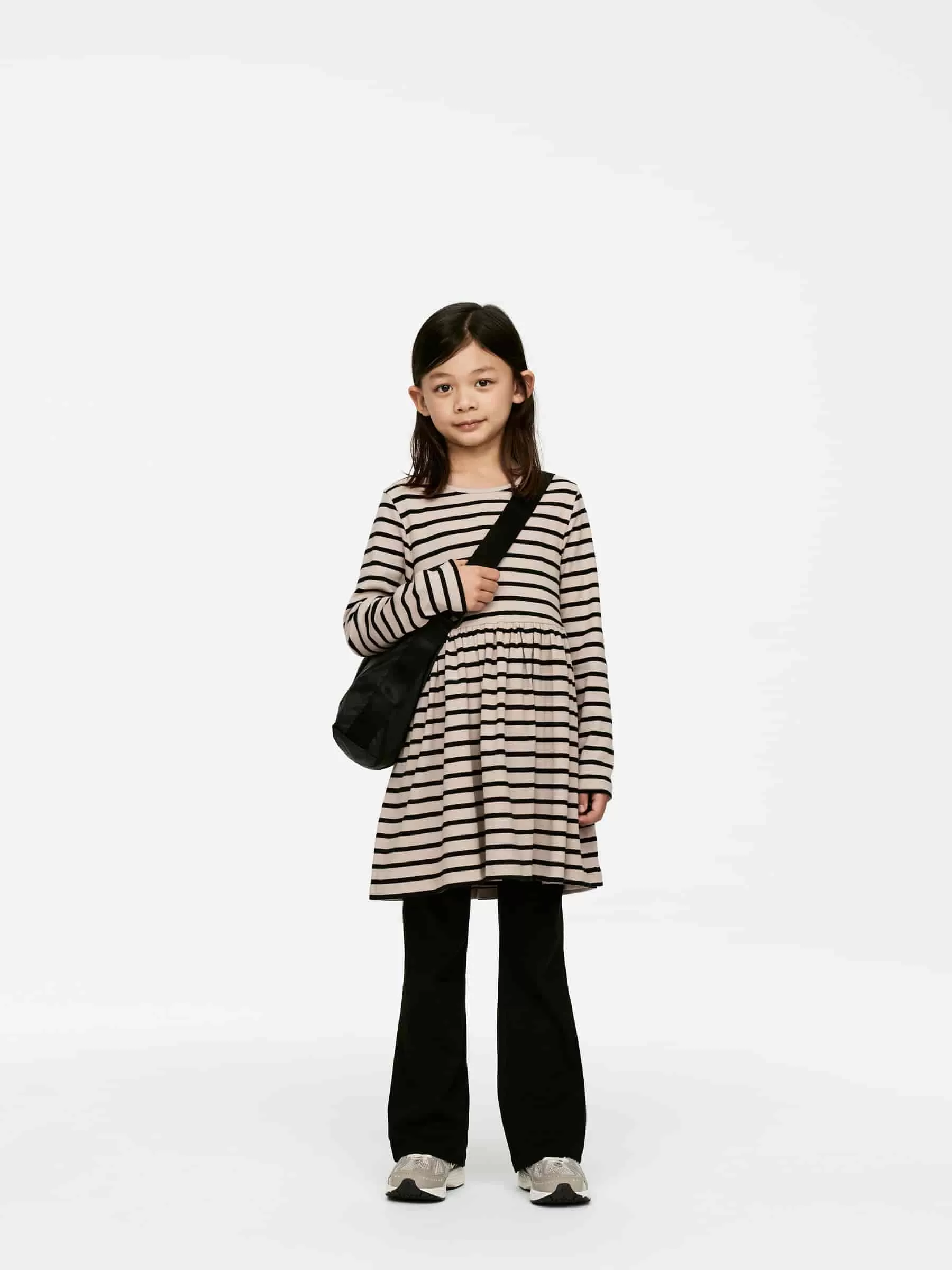 ARKE Kinder Kleid aus Baumwollripp Schwarz/Beige