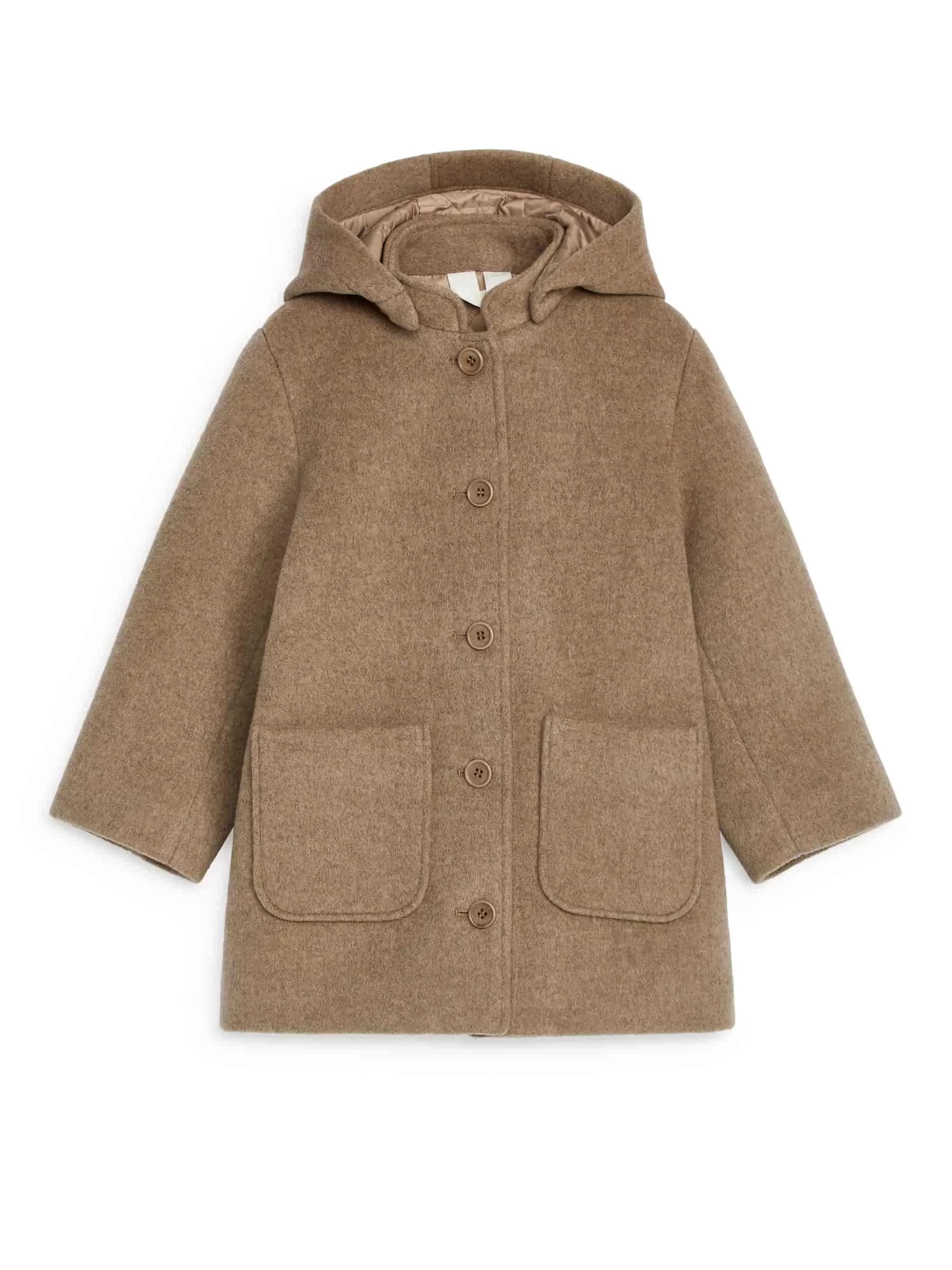 Mantel aus einer Wollmischung. Mit abnehmbarer Kapuze, Knopfleiste vorne und aufgesetzten Taschen. Gefüttert. Der Mantel besteht zu 80 % aus RWS-Wolle (TE-00047206). Produkte, die nach dem Responsible Wool Standard (RWS) zertifiziert sind, enthalten Wollfasern von Farmen, die unabhängig nach Tierschutz- und Landbewirtschaftungsanforderungen zertifiziert sind.