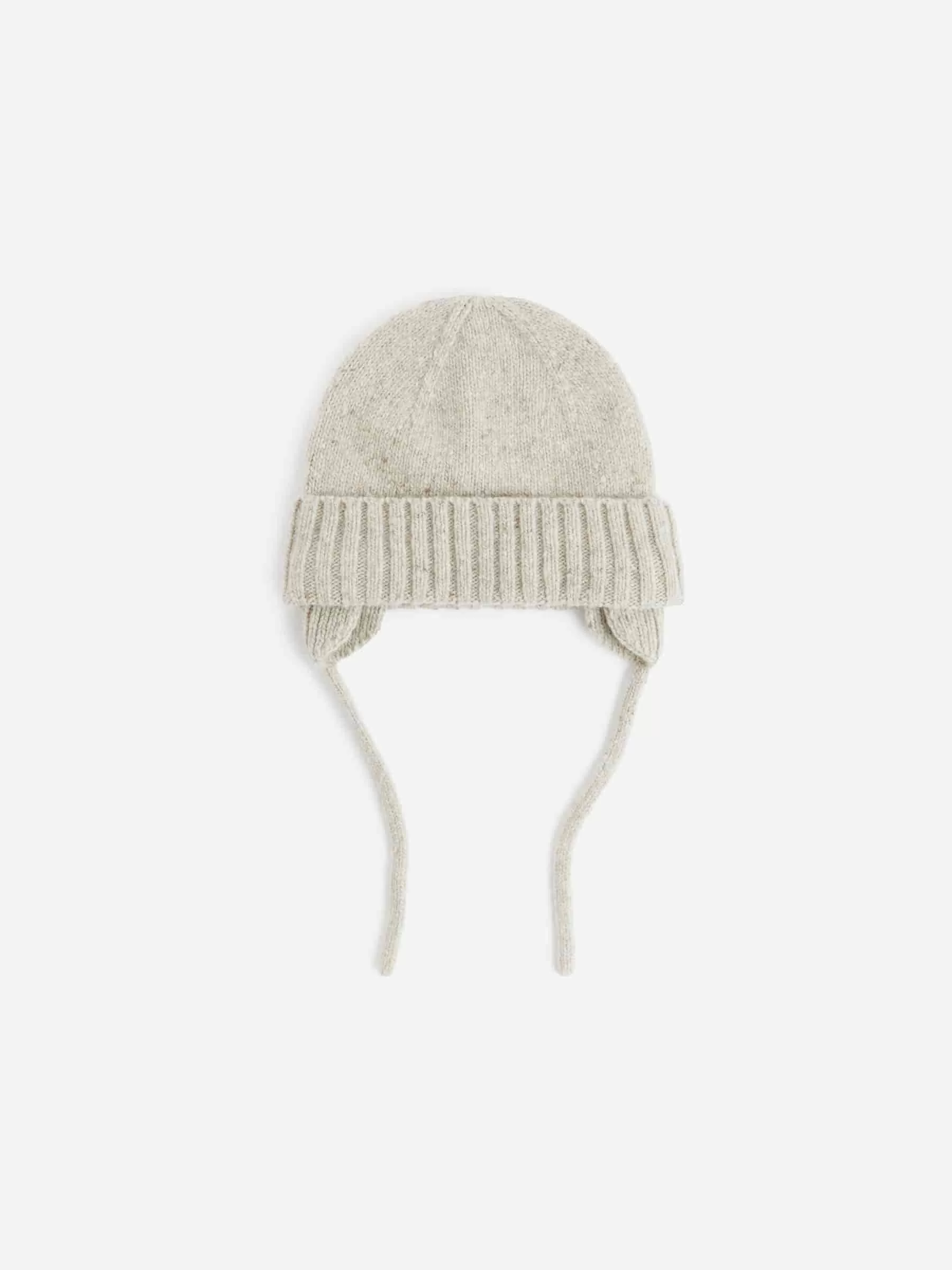 ARKE Kinder Neps-Beanie aus Wollmischung mit Ohrenklappen Cremefarben