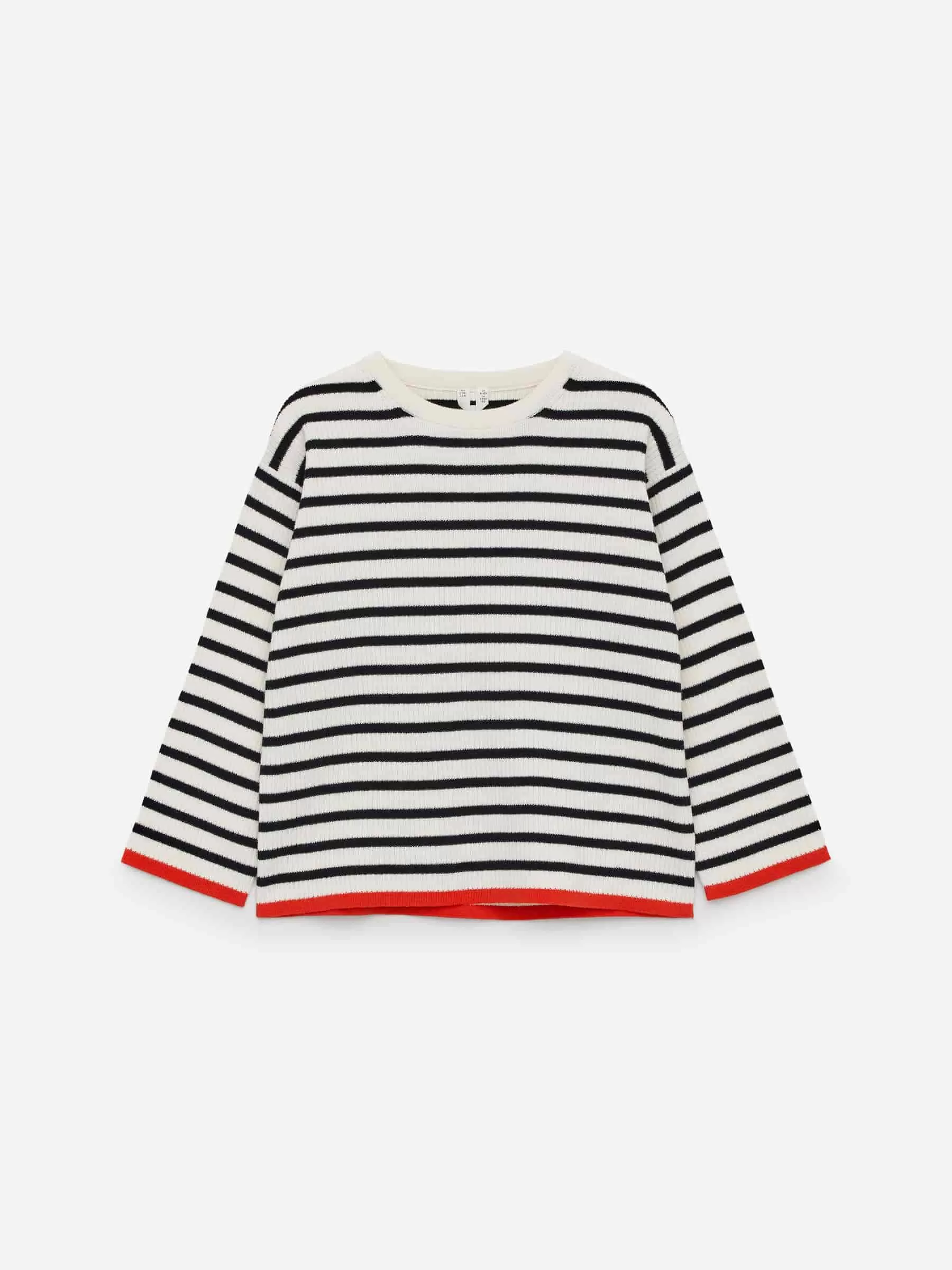 ARKE Kinder Rippstrickpullover aus Baumwolle Off White/Blau/Rot