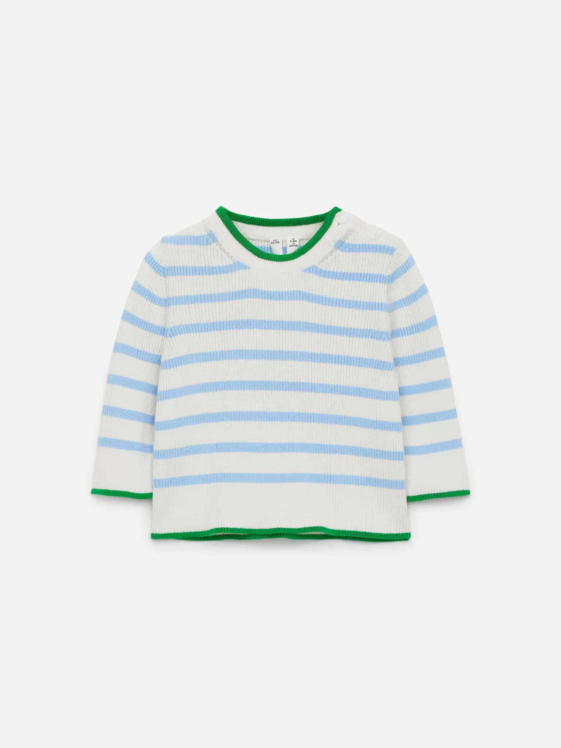 ARKE Kinder Rippstrickpullover für Neugeborene Blau/Gebrochenes Weiß/Grün