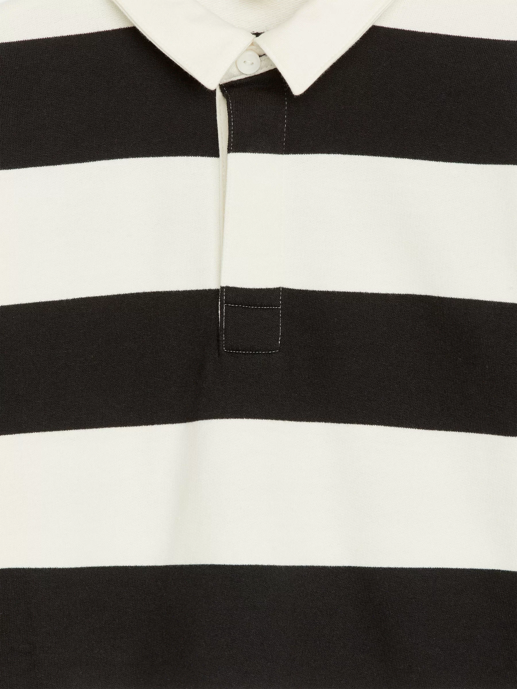 Rugby-Shirt mit lockerer Passform und Schlitzen an den Seiten. Mit verdeckter Knopfleiste vorne und gerippten Bündchen.