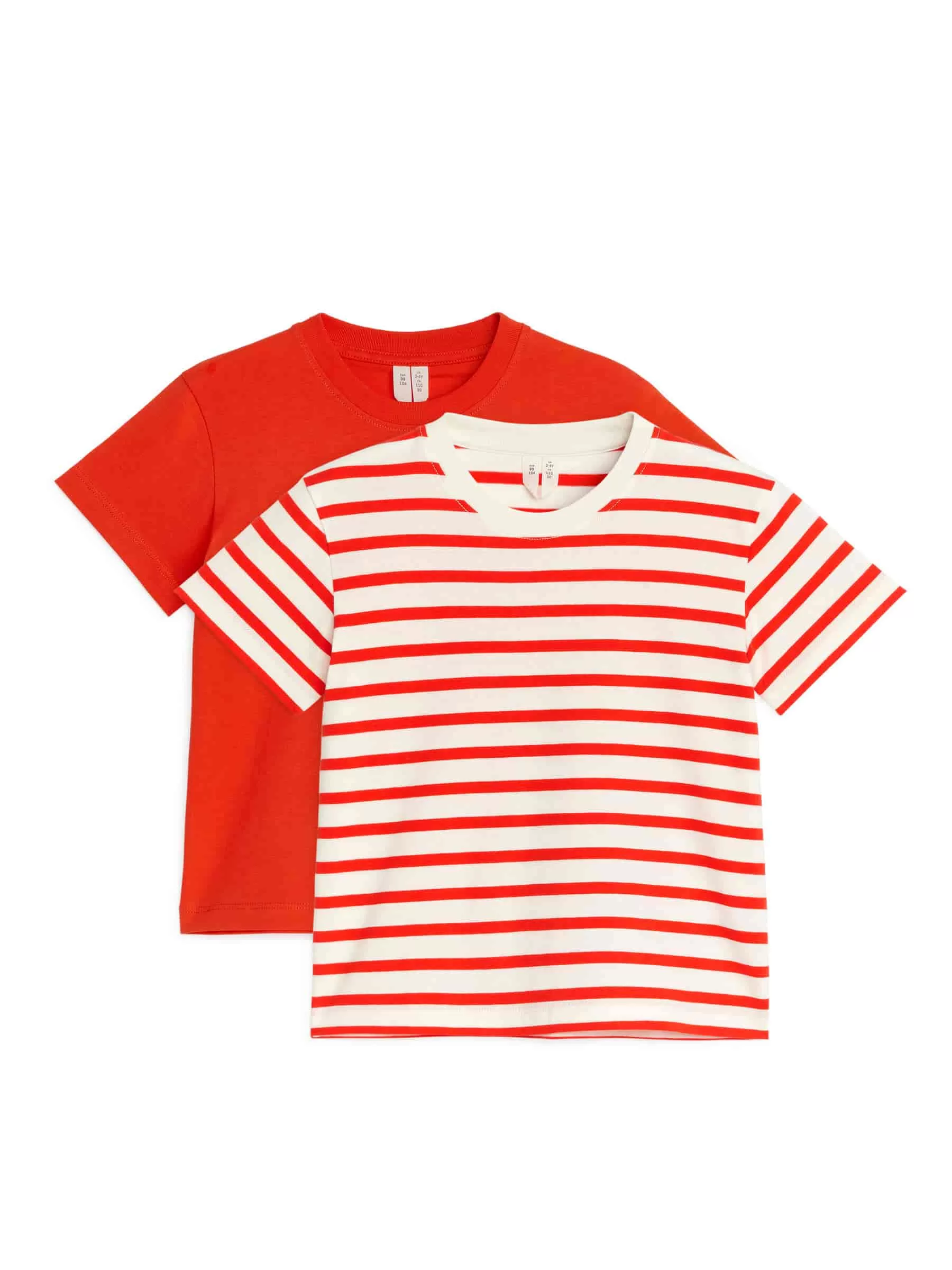 ARKE Kinder T-Shirt mit Rundhalsausschnitt im 2er-Set Rot/Gebrochenes Weiß