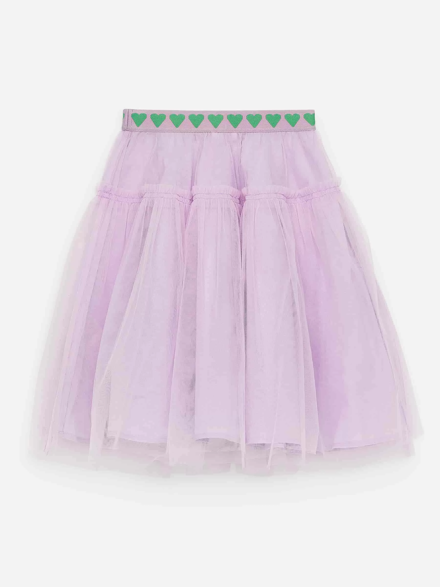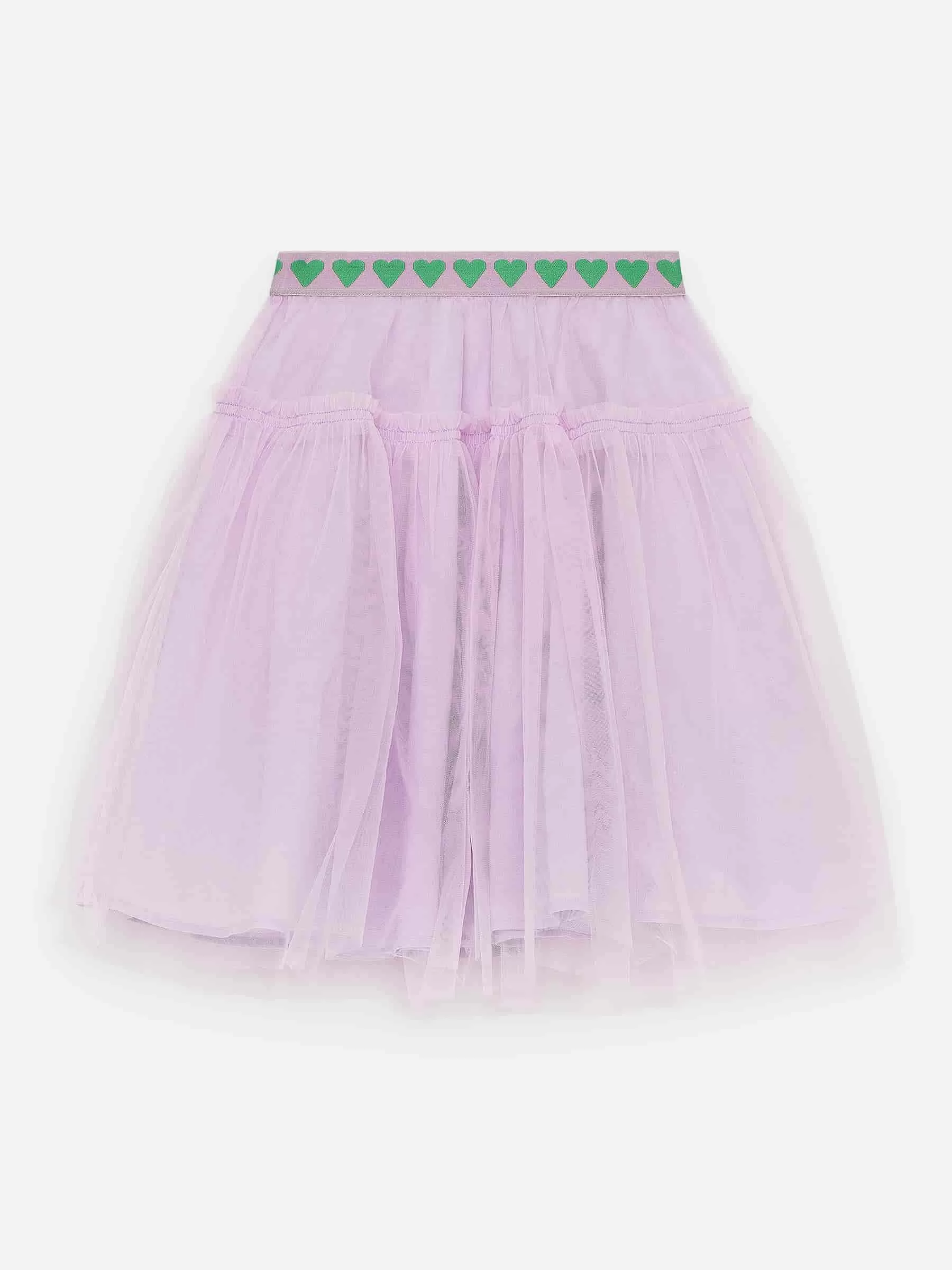 Tüllrock mit elastischem Bund. Rohe Kanten. Gefüttert.
