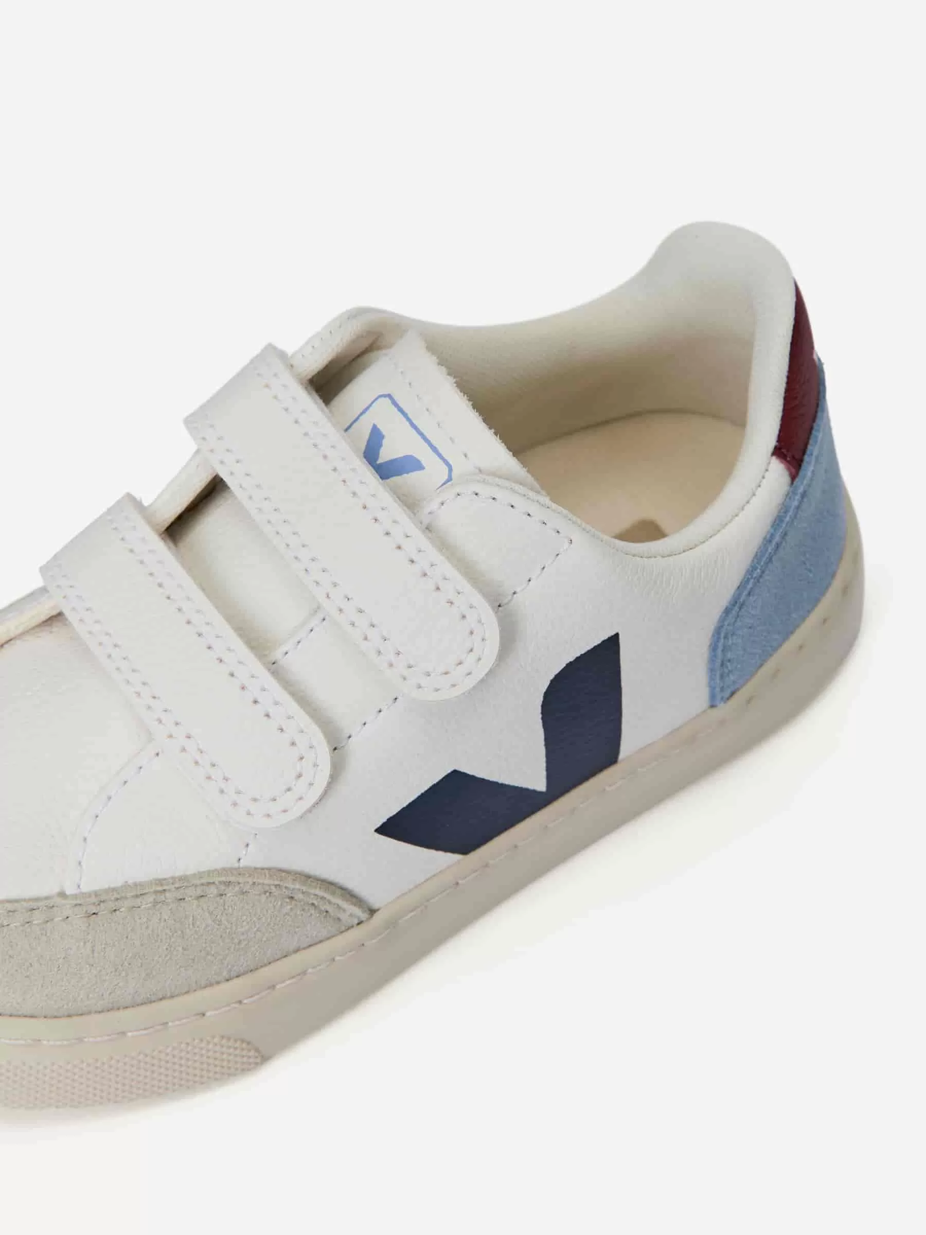Veja V-12-Sneaker für Kinder werden aus ethisch einwandfreiem und fair gehandeltem Leder und Wildkautschuk hergestellt. Diese Version ist vom ikonischen Erwachsenenstil inspiriert und verfügt über eine verstärkte Sohle, eine verstärkte Zehenpartie und zwei Klettverschlüsse für einfaches Anziehen. In anderen Größen erhältlich.