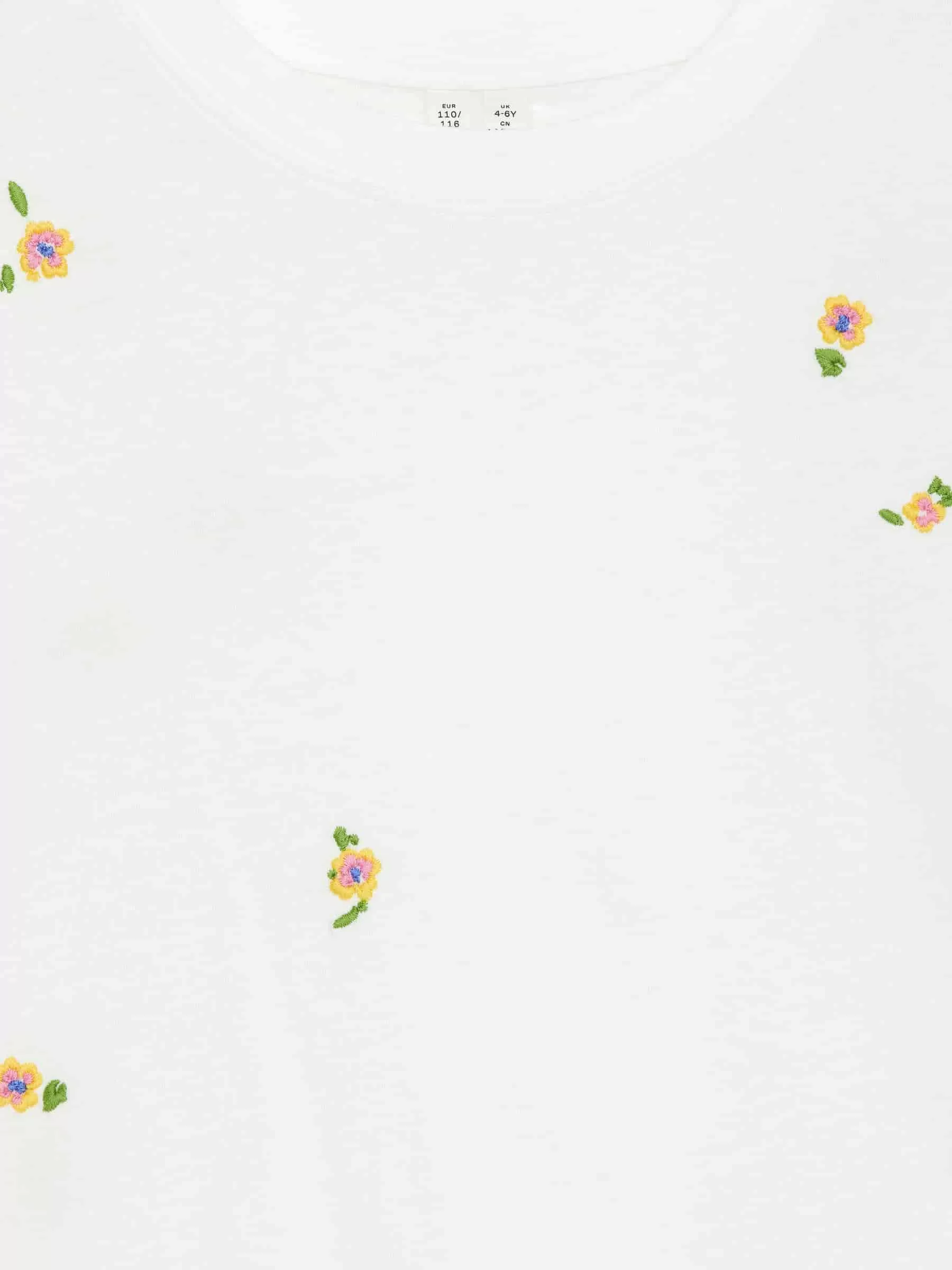 Glatter T-Shirt-Schnitt für eine weite Passform mit leicht überschnittenen Schultern. Es besteht aus Baumwolljersey und hat einen gerippten Ausschnitt.