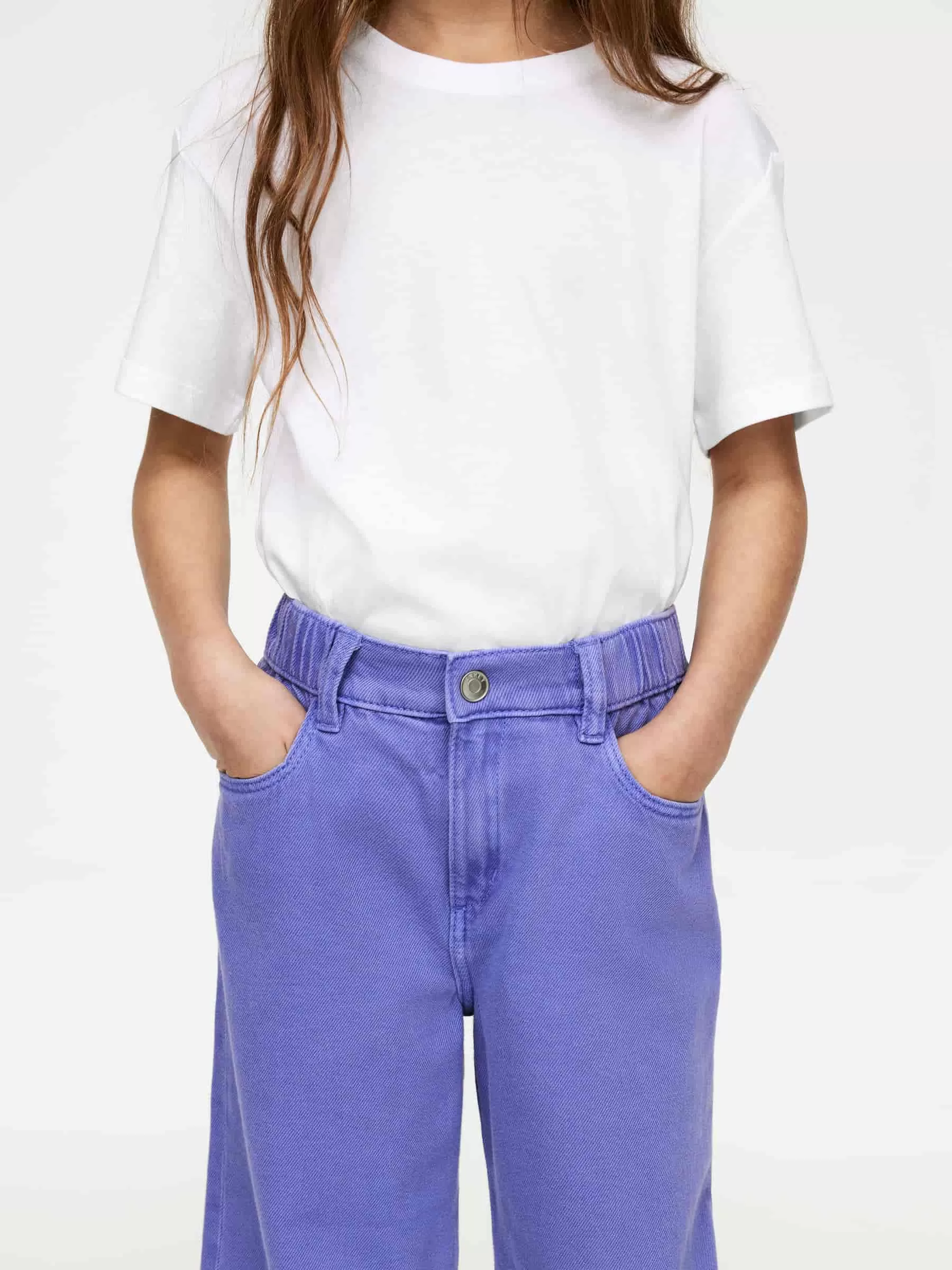 Weite Jeans aus gewaschenem Baumwollstoff. Verstellbare Gummizüge in der Taille. Taschen vorne und hinten sowie Gürtelschlaufen.